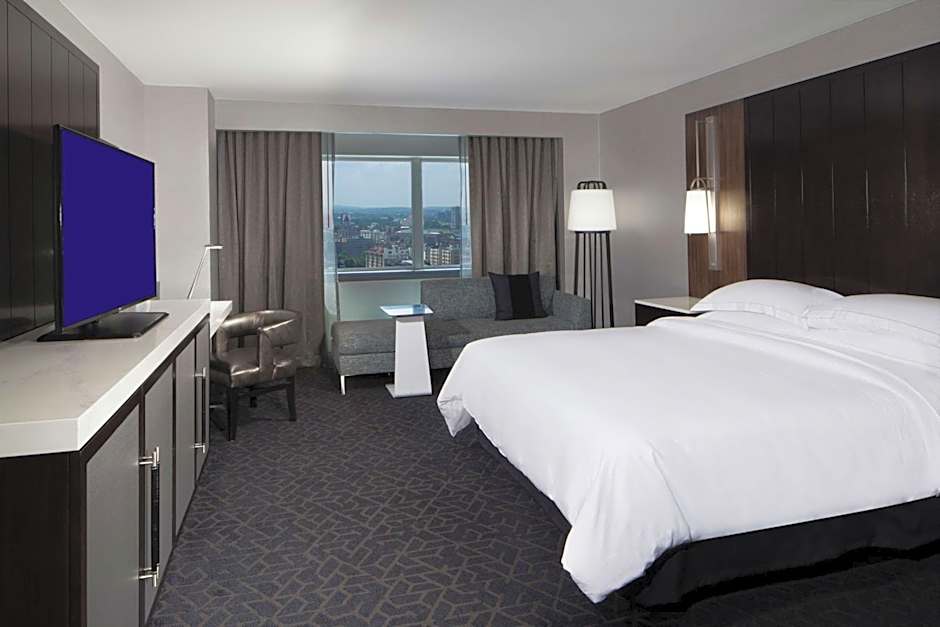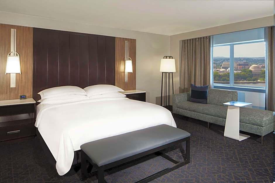 This room is furnished with one king bed. This room is located on the top floor of the hotel. The room features a flat-screen TV, goose-down comforters, an extra deep bathtub and soft bathrobes and slippers.