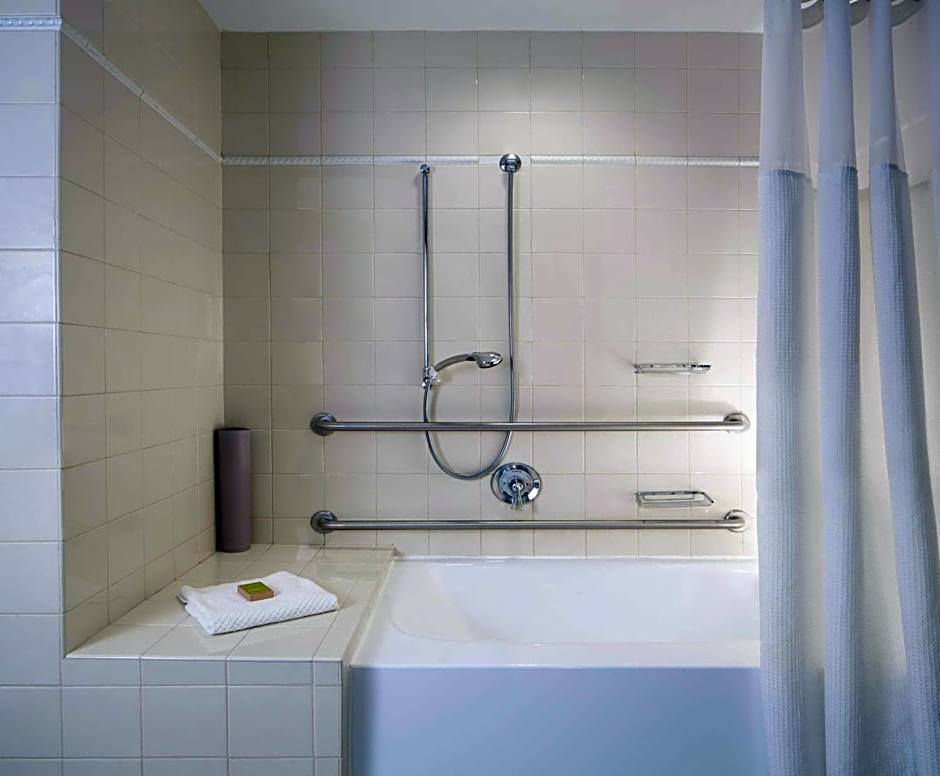 This room features a roll-in shower.